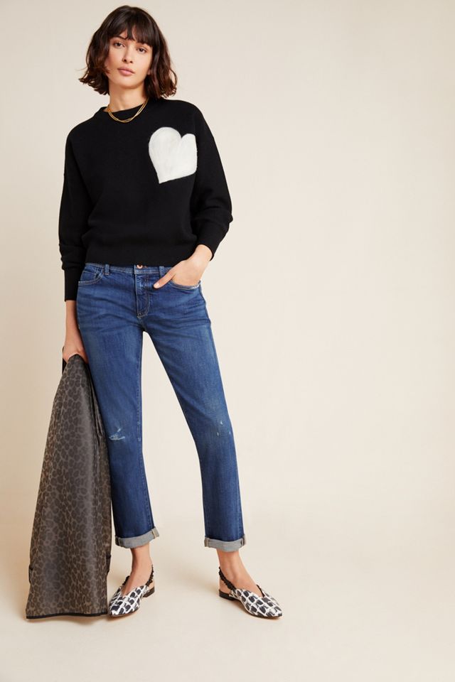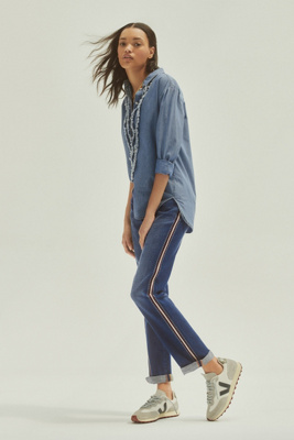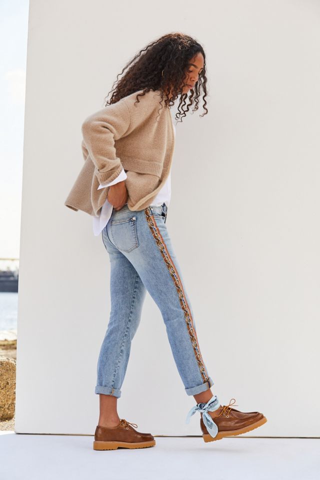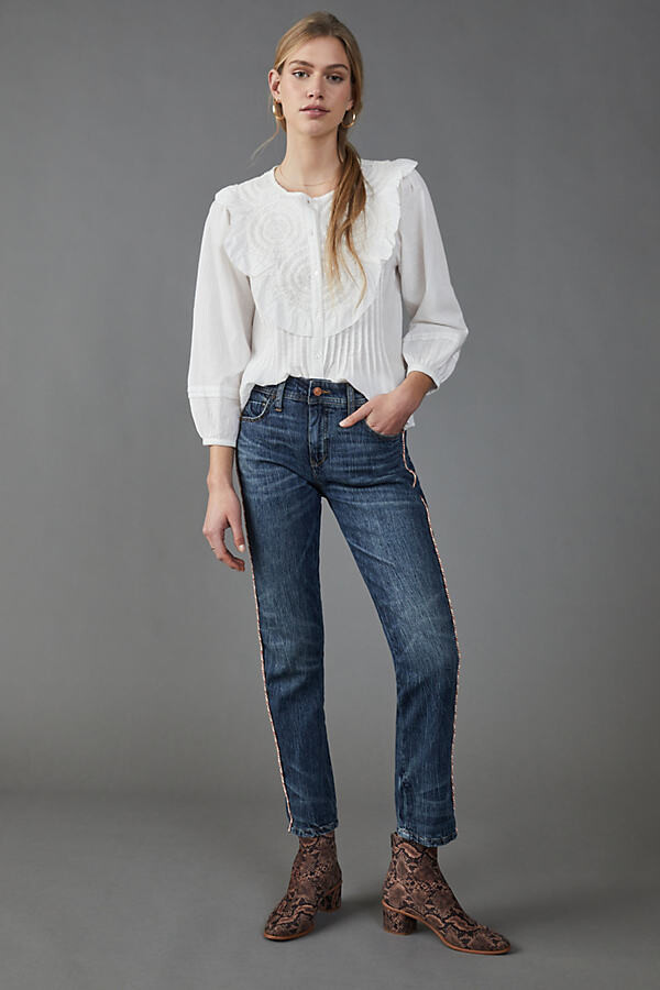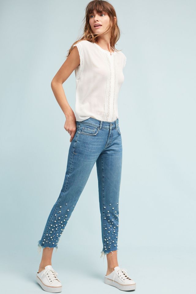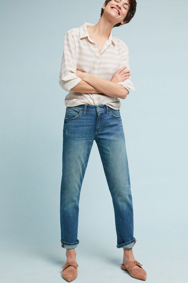 From Pilcro an Anthropologie-exclusive. Embellished with florals this classic pair fits slimly through the hip with a relaxed calf and cuff-able hem. Pilcro Mid-Rise Slim Boyfriend Jeans Womens 27 Side-Stripe Distressed Crop Blue 35 0 Size.